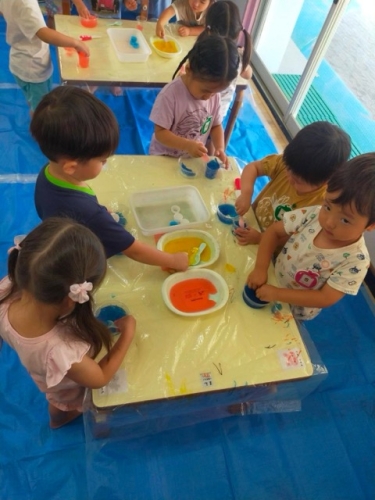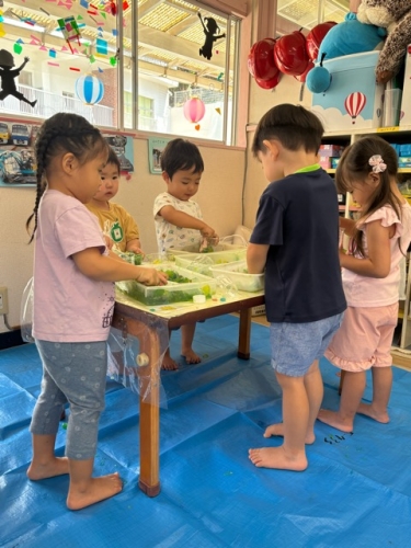 「もうそろそろおしまいにするよ」と言ってもなかなか終わらずに、最後の最後まで遊んでくれる子がたくさんいて、本当にこういう感触あそびが好きなんだな♡と、再認識した時間となりました!