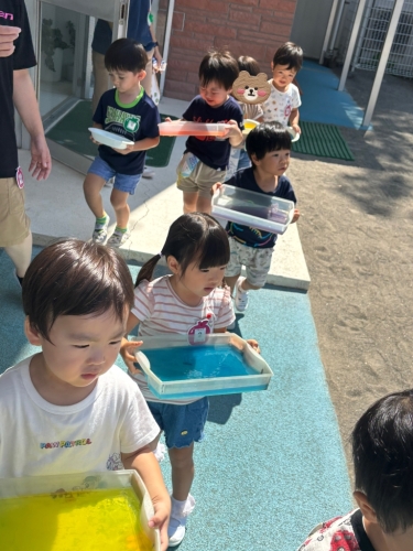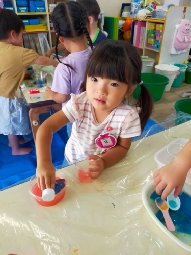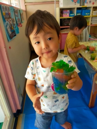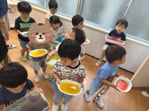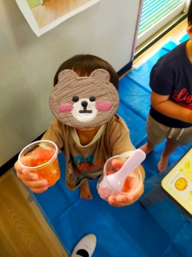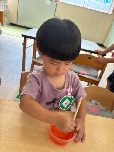 昨日、みんなが使う寒天の色付けの準備を手伝ってもらいました☆