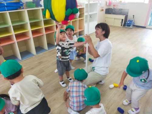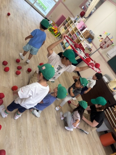 上に投げる練習のための玉入れ練習もみんなワイワイにぎやかに楽しんでくれていました!