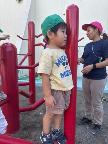 そして、運動会は外での活動になるので無理のない範囲で外遊びを取り入れて、外にも慣れていきたいと思っています。状況に合わせて、短時間で遊んだり、日陰で遊べるスペースを限定しながら遊んでいるのですが、「いや~😫」とならずにお願いしたことを守って遊べている姿に成長を感じます!