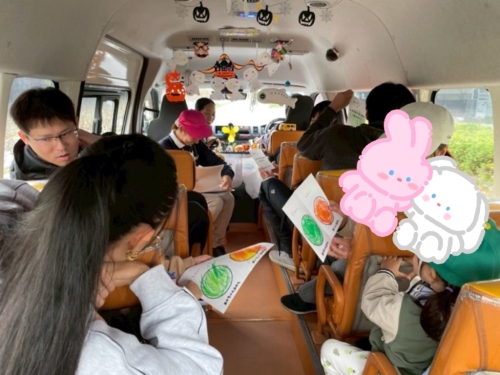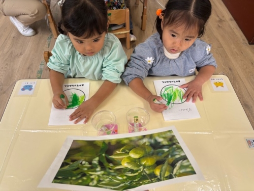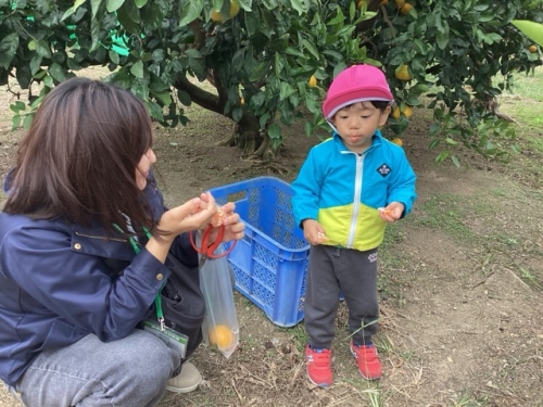 園バスで一緒に乗っておでかけ♪という事もあり、ちょっとドキドキしている様子もありましたが、景色を見たり、事前に行ったみかんのぬりえを一緒に見ながらいつもと違う雰囲気を楽しむ事が出来ました😊