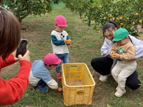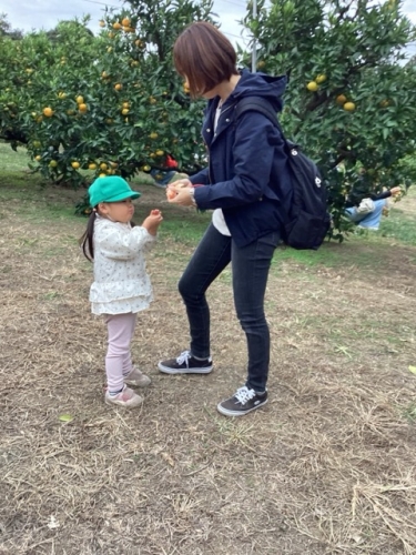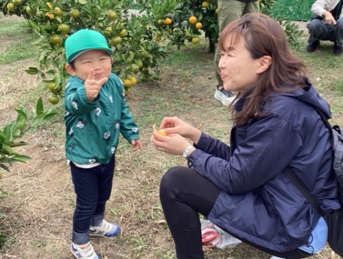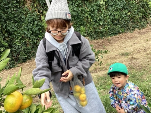 おいしそうにみかんを頬張る子もいれば、自分では食べなくてもお土産用のみかんを選んでいたり…😋