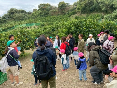 広い農園の中、おいしそうなみかんを探してみんなで出発~☆