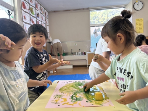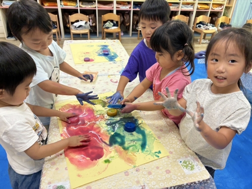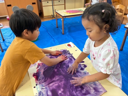 色水遊びは2回目でしたが、2回とも色の発見がいっぱいで楽しそうでした![]()