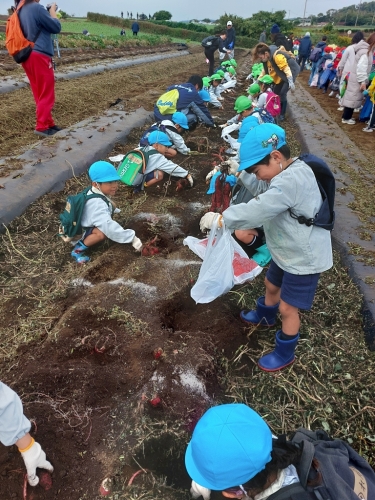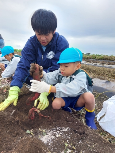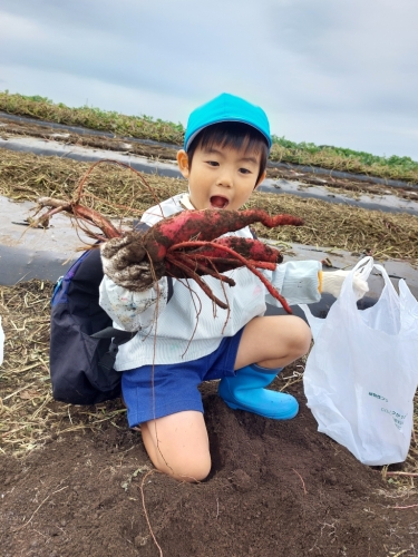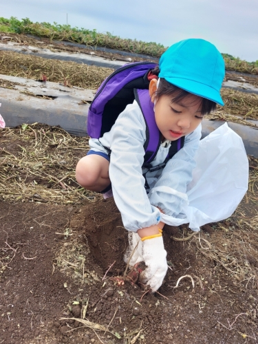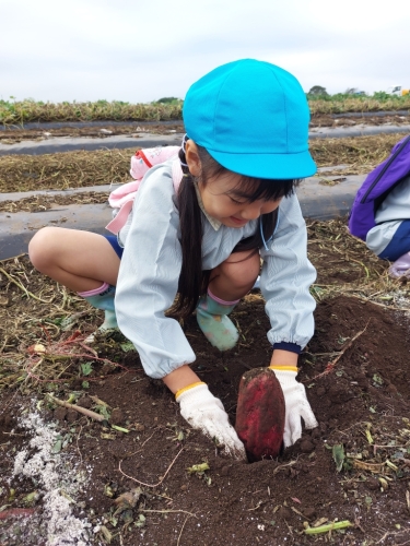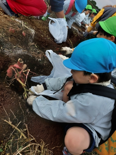 お芋の周りの土を手で掘ったり、お芋をグルグルと動かしたりと、事前に「どうしたら抜けるかな?」とみんなで考えた方法を実践しながら、とっても上手に掘っていました!