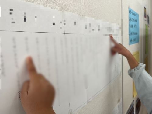 台本が壁に貼られているのを見て、自分のセリフを探してみたり、言ってみたり❣