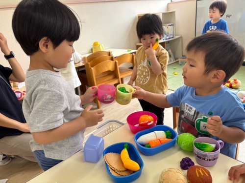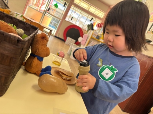 お家の方が作ってくれてるご飯や楽しい食卓の時間がこうした遊びに繋がっているんだろうなと思いながら様子を見守っています(^^)