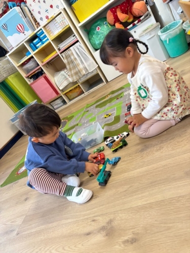 トミカも色々な種類があり、並べてみたり、道路を走らせたり、レースをしていたり♪