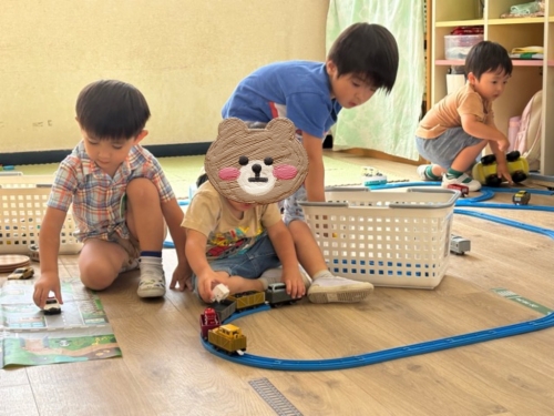 時々…電車が正面衝突して、お友達同士も衝突する事故も発生しますが(^^;)それも一緒に遊ぶ中でどうすればいいのか考えたり譲り合いの経験を積む大切な機会になっています!