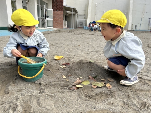 最近は、落ち葉やどんぐりなどを見つけて遊びに取り入れているようです。
