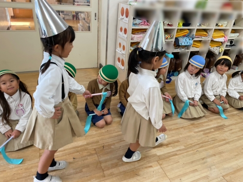 本番まであと少し!当日が楽しみな気持ちと、終わってしまう事を寂しく感じる気持ちがある様で、「楽しみだな」「終わっちゃうのやだな」とそれぞれの思いを抱えながらお遊戯会に向けて頑張っています。