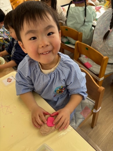 その他にも白い粘土の感触を楽しみながら、絵の具を混ぜて作った食べ物も用意しているので皆さん是非遊びに来てくださいね♡