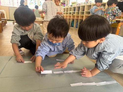 たくさんハサミで切った画用紙があっという間になくなる位、みんな夢中で取り組んでくれていました!